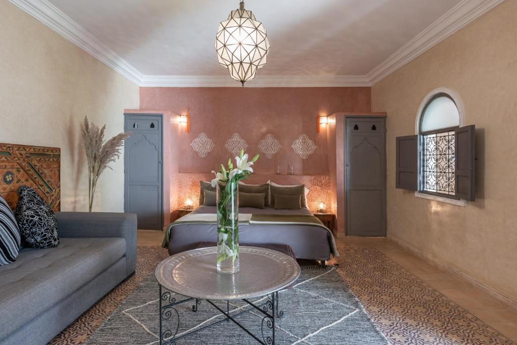 Niché dans l’un des plus anciens quartiers de la médina, notre Riad à Marrakech est une ancienne maison familiale entièrement rénovée dans la pure tradition berbère. Entre murs recouverts de tadelakt, zelliges éclatants et arches sculptées, chaque détail évoque l’authenticité et le raffinement du savoir-faire marocain, tout en vous offrant le meilleur du confort moderne