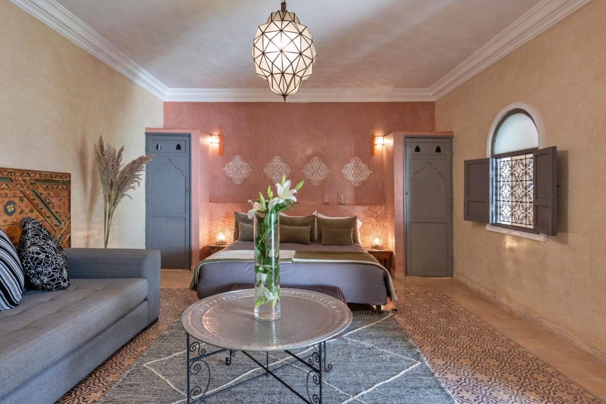 L’emplacement de notre Riad est situé à quelques minutes à pied des jardins de Majorelle qui ne manqueront pas de vous seduire. Pour rejoindre la place Jemaa El Fna il vous faudra compter 15 minutes à pied